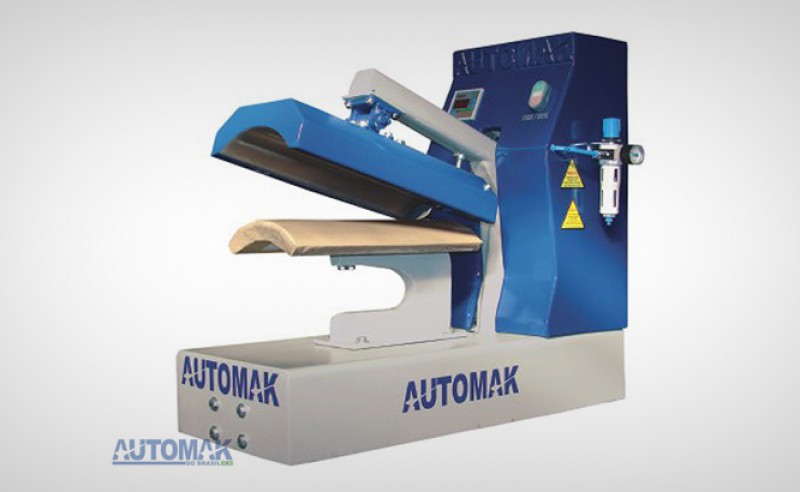 Cabeçote inferior: Em aço carbono, com acabamento polido, possuindo borracha de silicone de alta temperatura de 10 mm de espessura com acabamento teflonado.